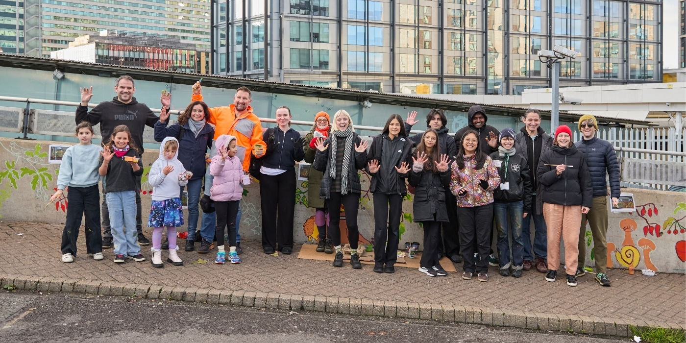 Ellie: For me, this is local people. Seeing families, friends and complete strangers stop, ask questions and even pick up a brush has been incredible. There’s been a real sense of shared ownership, and watching the mural grow from a blank wall into something colourful and meaningful has been genuinely joyful. On our main painting day on 30 November, a group came together to help bring the mural to life – some for a few minutes, others for several hours. Some had lived nearby for decades, others for just a few months. Everyone’s contribution has made it a truly collaborative and community-focused effort.