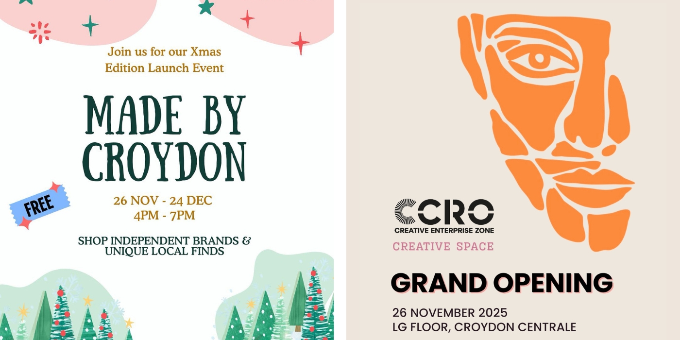 Lizzy: The ‘Made by Croydon – Xmas Edition’ is a festive pop-up market running from 26 November to 24 December. You can expect a fantastic selection of independent brands and unique local finds, making it the perfect place for holiday shopping. It kicks off with the launch event next Wednesday, which also celebrates the official opening of the Croydon Creatives Network space.