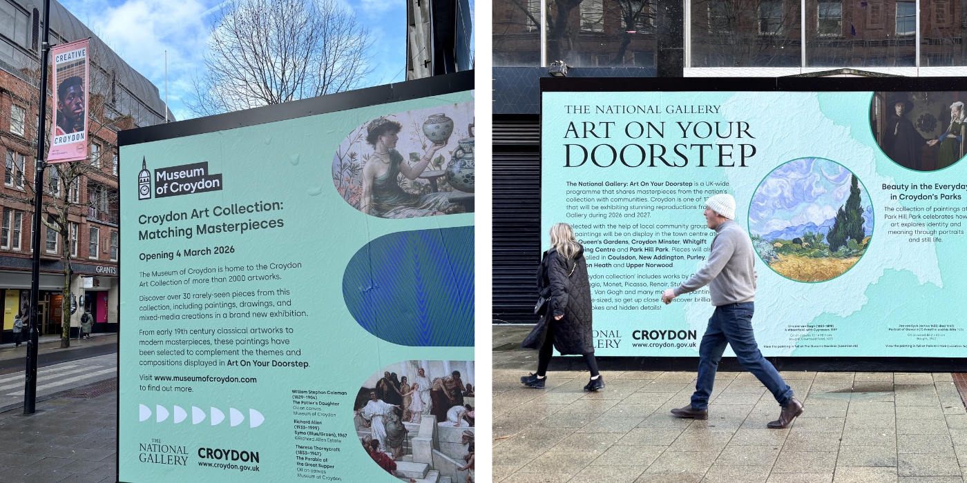 Over the last month you may have walked past the ‘Art On Your Doorstep’ hoarding opposite Grants on the High Street, which on one side promotes the new Museum of Croydon exhibition ‘Croydon Art Collection: Matching Masterpieces. This exhibition, which complements the National Gallery’s ‘Art On Your Doorstep’ trail, opened this week on level 1 of the Museum. It’s a rare opportunity to see art from the Museum’s collection, which is usually stored away from public view in their basement archives, so we were eager to pop along to take a look.