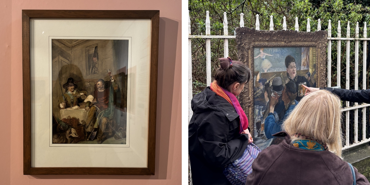 The 30 or so artworks, from paintings and drawings, to mixed-media creations and even a carving, represent a diverse selection of styles and periods, from early 19th century classical artworks to modern masterpieces. The clever part is that each collection piece has been selected by the Museum’s curatorial team, Jessica Woolf and Elanor Straw, to link with one of the National Gallery’s Art On Your Doorstep paintings that have been replicated at life size (frame and all) and placed in various key places around the borough.