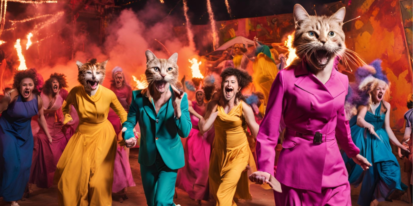 Simone: Meow! Only the AI knows for sure! The cats appeared in an AI-generated image we made during development, when we typed in ‘create an image of people running and screaming after a show is burning down.’ We loved what it came up with – a perfect example of how the work keeps shifting shape and how AI continues to surprise us. Toot toot! All aboard the Trainwreck Express – don’t miss out!